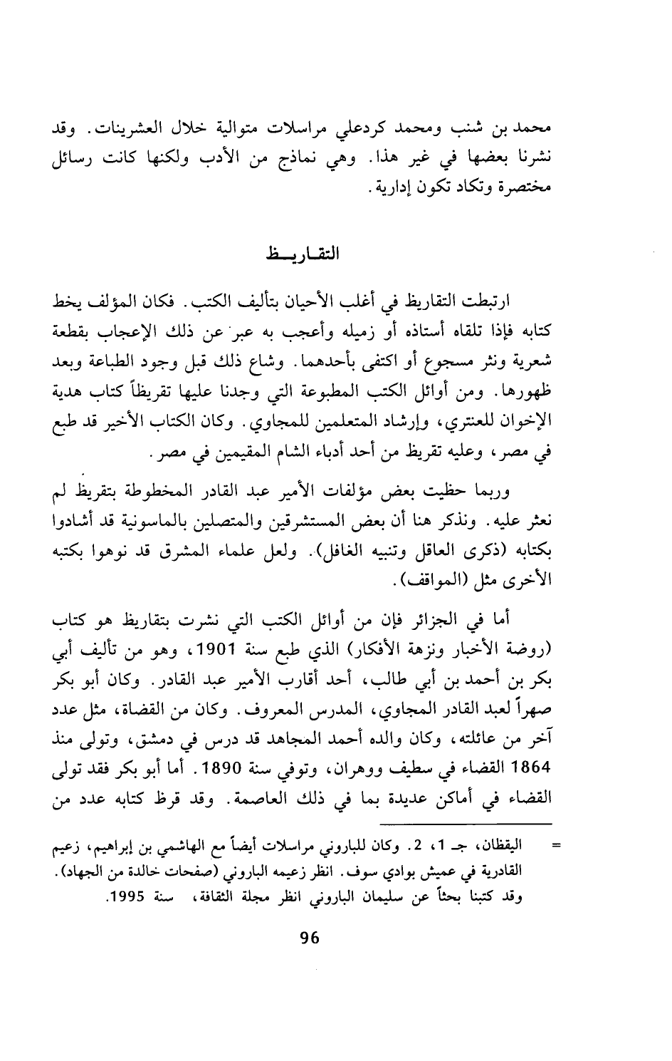 = اليقظان، ج 1، 2. وكان للباروني مراسلات أيضا مع الهاشمي بن إبراهيم، زعيم القادرية في عميش بوادي سوف. انظر زعيمه الباروني (صفحات خالدة من الجهاد). وقد كتبنا بحثا عن سليمان الباروني انظر مجلة الثقافة، سنة 1995.