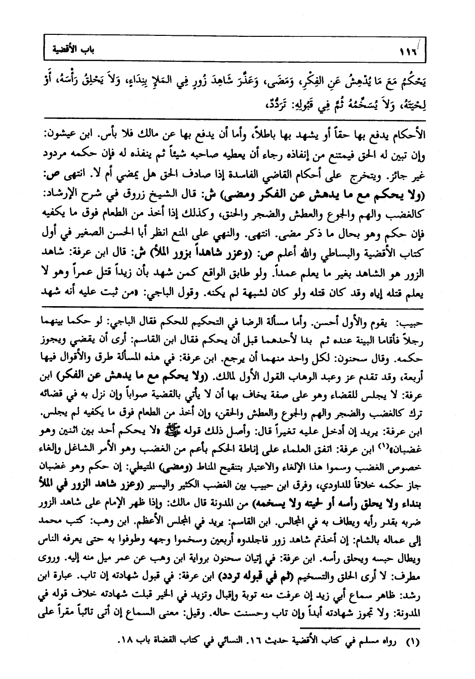 يحكم مع ما يدهش عن الفكر، ومضى وعزر شاهد زور في الملأ بنداء، ولا يحلق رأسه أو لحيته، ولا يسخمه، ثم في قبوله تردد