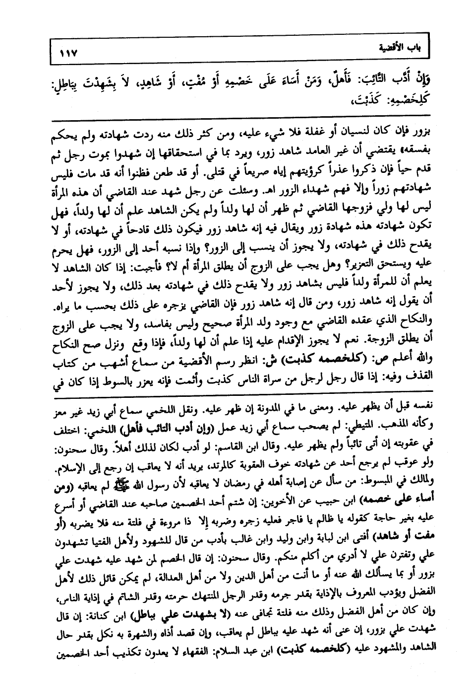 وإن أدب التائب فأهل، ومن أساء على خصمه أو مفت، أو شاهد، لا بشهدت بباطل كلخصمه كذبت،
