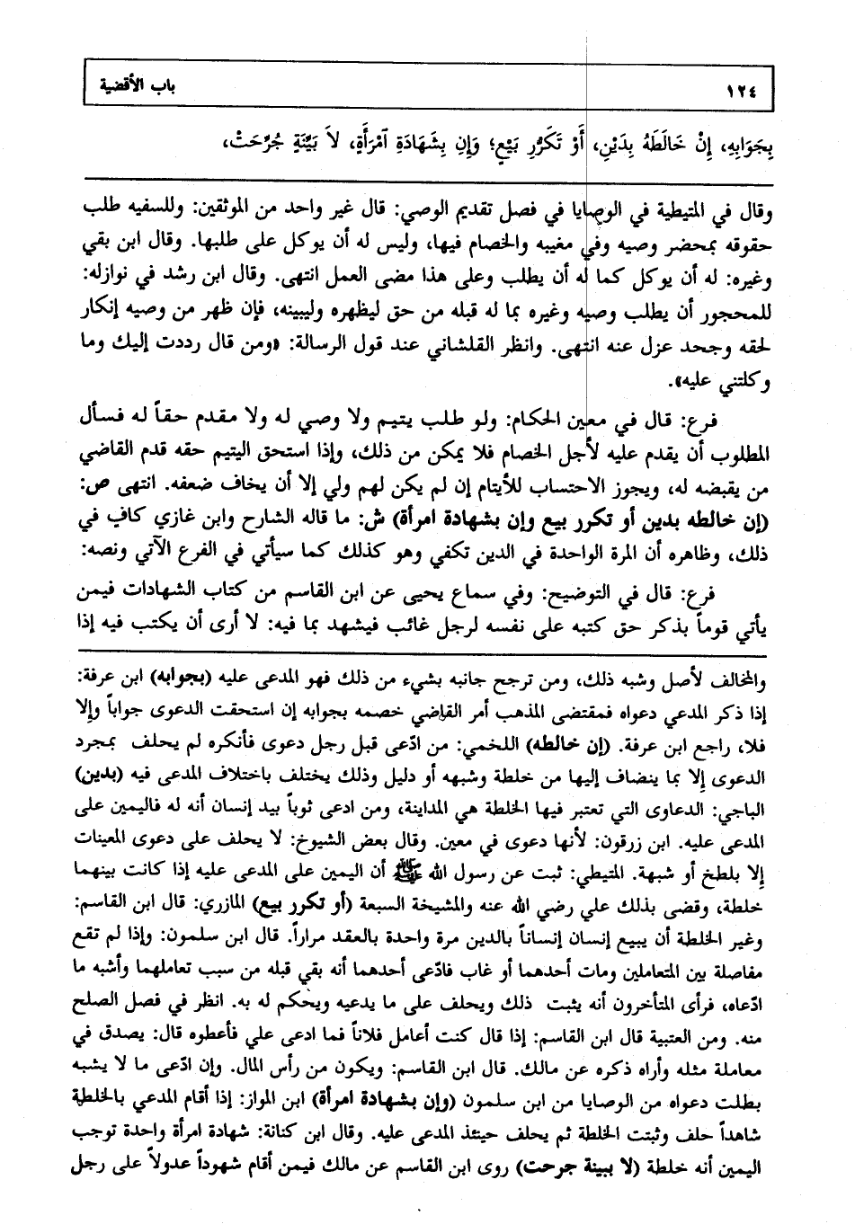 فرع: قال في معين الحكام: ولو طلب يتيم لا وصي له ولا مقدم حقا له فسأل المطلوب أن يقدم عليه لأجل الخصام فلا يمكن من ذلك وإذا استحق اليتيم حقه قدم القاضي من يقبضه له ويجوز الاحتساب للأيتام إن لم يكن لهم ولي إلا أن يخاف ضعفه، انتهى. ص: (إن خالطه بدين أو تكرر بيع وإن بشهادة امرأة) ش: ما قاله الشارح وابن غازي كاف في ذلك وظاهره أن المرة الواحدة في الدين تكفي وهو كذلك كما سيأتي في الفرع الآتي ونصه: فرع: قال في التوضيح وفي سماع يحيى عن ابن القاسم من كتاب الشهادات فيمن يأتي قوما بذكر حق كتبه على نفسه لرجل غائب فيشهد بما فيه لا أرى أن يكتب فيه إذا