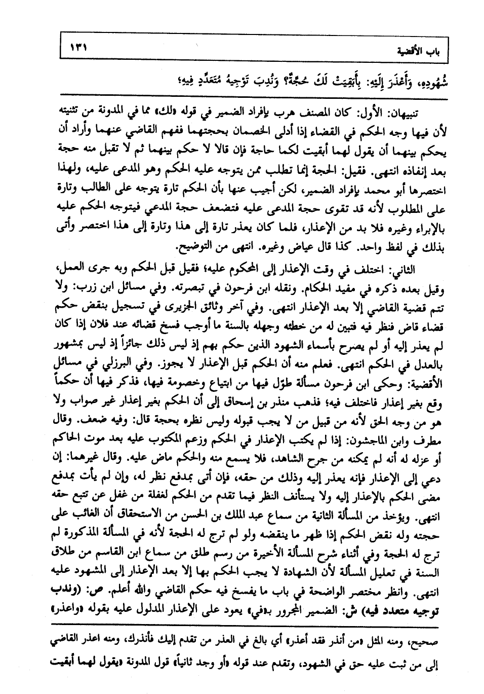 شهوده وأعذر إليه بأبقيت لك حجة، وندب توجيه متعدد فيه
