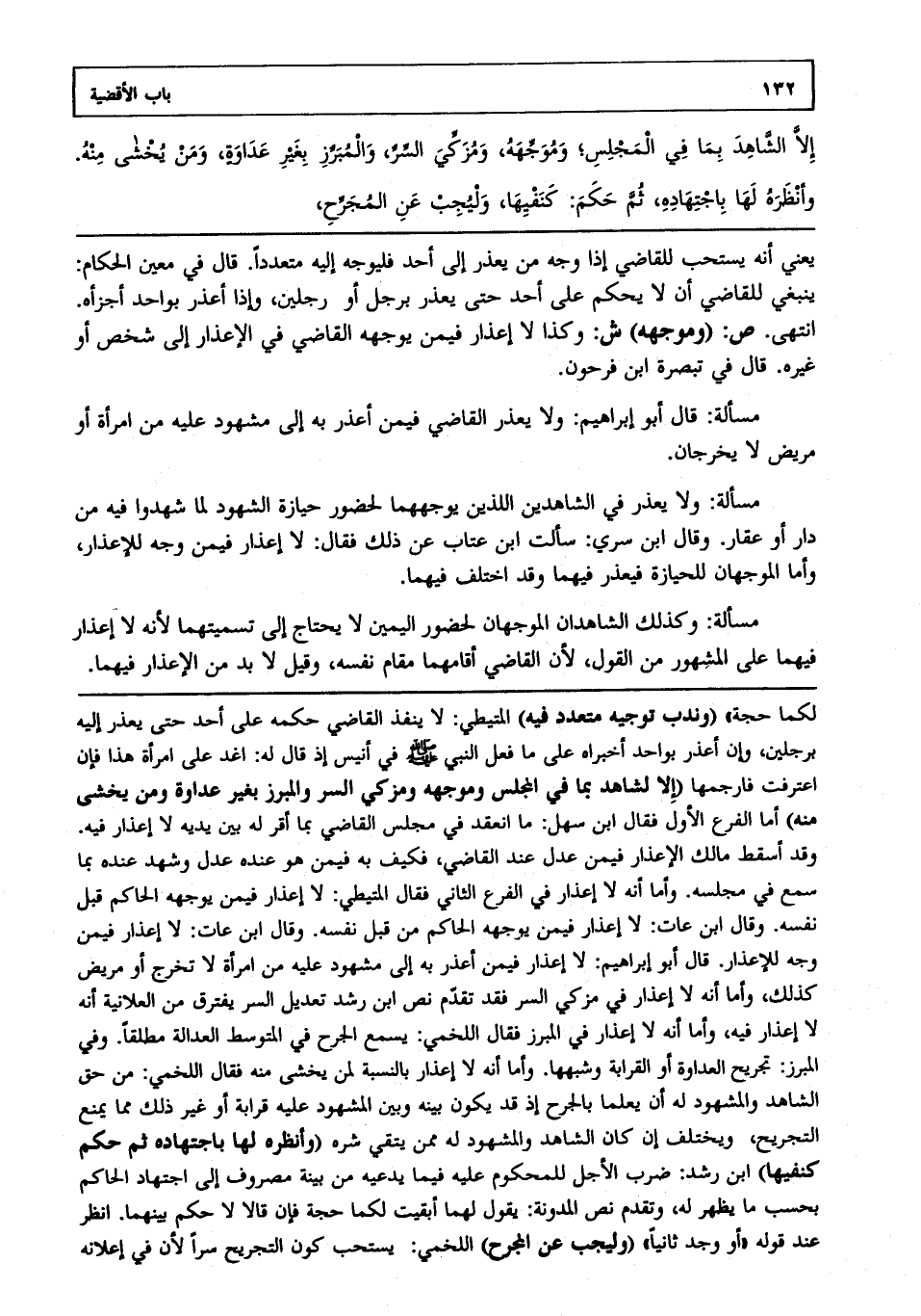 إلا الشاهد بما في المجلس وموجهه، ومزكي السر، والمبرز بغير عداوة، ومن يخشى منه، وأنظره لها باجتهاده ثم حكم كنفيها وليجب عن المجرح