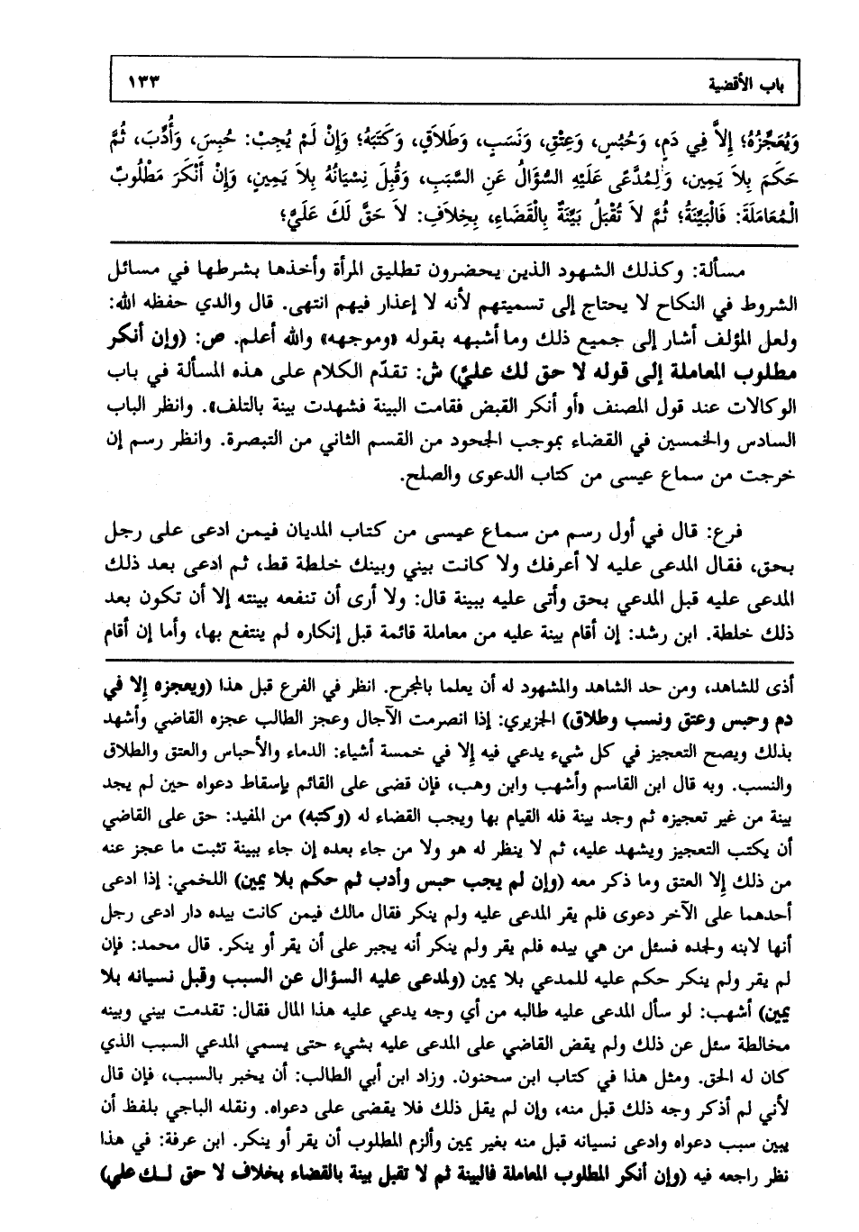 مسألة: وكذلك الشهود الذين يحضرون تطليق المرأة وأخذها بشرطها في مسائل الشروط في النكاح لا يحتاج إلى تسميتهم؛ لأنه لا إعذار فيهم، انتهى. قال والدي -حفظه الله-: ولعل المؤلف أشار إلى جميع ذلك وما أشبهه بقوله: "وموجهه" والله أعلم. ص: (وإن أنكر مطلوب المعاملة إلى قوله لا حق لك علي) ش: تقدم الكلام على هذه المسألة في باب الوكالات عند قول المصنف أو أنكر القبض فقامت البينة فشهدت بينة بالتلف وانظر الباب السادس والخمسين في القضاء بموجب الجحود من القسم الثاني من التبصرة وانظر رسم إن خرجت من سماع عيسى من كتاب الدعوى والصلح