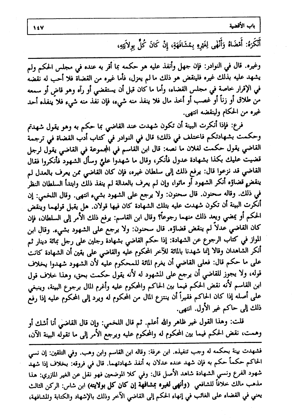 وغيره، قال في النوادر: فإن جهل وأنفذ عليه هو حكمه بما أقر به عنده في مجلس الحكم ولم يشهد عليه بذلك غيره فلينقض هو ذلك ما لم يعزل فأما غيره من القضاة فلا أحب له نقضه في الإقرار خاصة في مجلس القضاء وأما ما كان قبل أن يستقضي أو رآه وهو قاض أو سمعه من طلاق أو زنا أو غصب أو أخذ مال فلا ينفذ منه شيء فإن نفذ منه شيء فلا ينفذه أحد غيره من الحكام ولينقضه، انتهى.