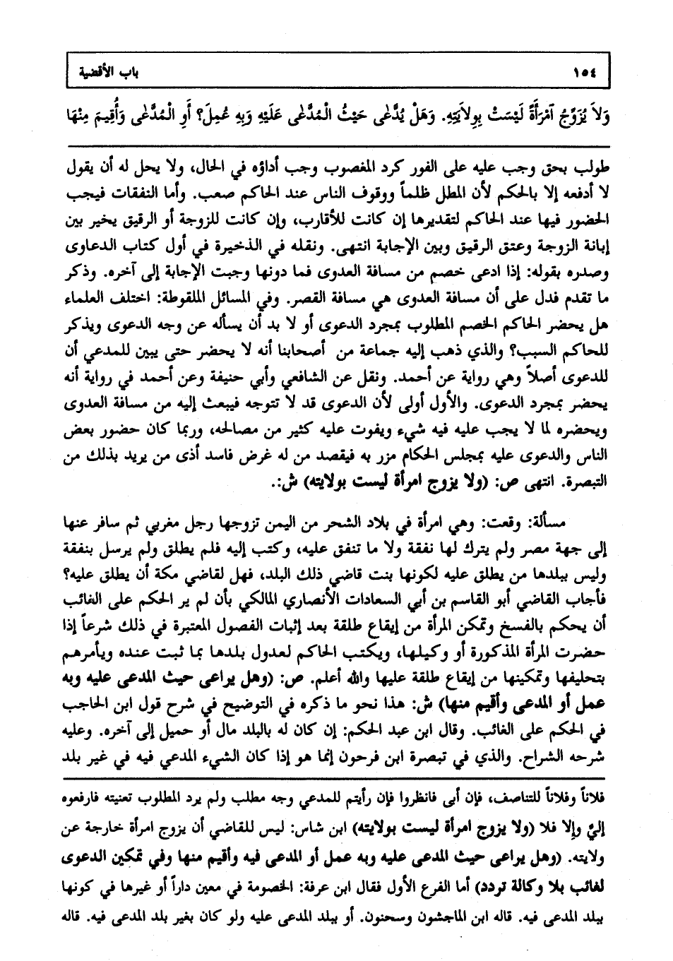 طولب بحق وجب عليه على الفور كرد المغصوب وجب أداؤه في الحال ولا يحل له أن يقول: لا أدفعه إلا بالحكم؛ لأن المطل ظلم ووقوف الناس عند الحاكم صعب وأما النفقات فيجب الحضور فيها عند الحاكم لتقديرها إن كانت للأقارب وإن كانت للزوجة أو الرقيق يخير بين إبانة الزوجة وعتق الرقيق وبين الإجابة، انتهى. ونقله في الذخيرة في أول كتاب الدعاوى وصدره بقوله: "إذا دعي خصم من مسافة العدوى فما دونها وجبت الإجابة" إلى آخره وذكر ما تقدم فدل على أن مسافة العدوى هي مسافة القصر وفي المسائل الملقوطة اختلف العلماء هل يحضر الحاكم الخصم المطلوب بمجرد الدعوى أو لا بد أن يسأله عن وجه الدعوى ويذكر للحاكم السبب، والذي ذهب إليه جماعة من أصحابنا أنه لا يحضر حتى يبين للمدعي أن للدعوى أصلا وهي رواية عن أحمد ونقل عن الشافعي وأبي حنيفة وعن أحمد في رواية أنه يحضر بمجرد الدعوى والأول أولى؛ لأن الدعوى قد لا تتوجه فيبعث إليه من مسافة العدوى ويحضره لما لا يجب عليه فيه شيء ويفوت عليه كثير من مصالحه، وربما كان حضور بعض الناس والدعوى عليه بمجلس الحكام مزر به فيقصد من له غرض فاسد أذى من يريد بذلك، من التبصرة، انتهى. ص: (ولا يزوج امرأة ليست بولايته) ش: