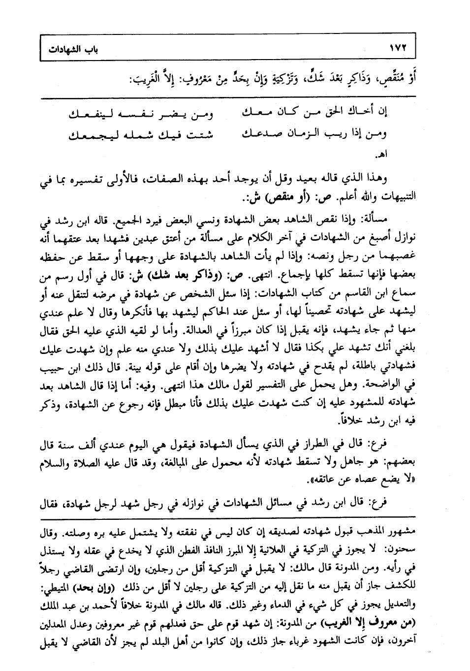 فرع: قال ابن رشد في مسائل الشهادات في نوازله في رجل شهد لرجل شهادة فقال
