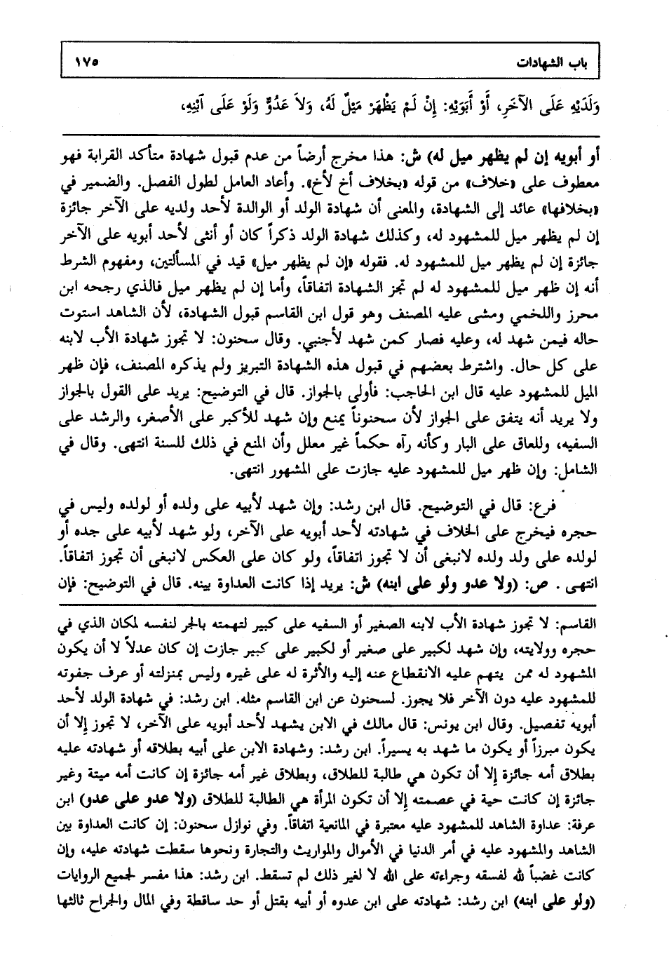 ولديه على الآخر أو أبويه إن لم يظهر ميل له، ولا عدو ولو على ابنه