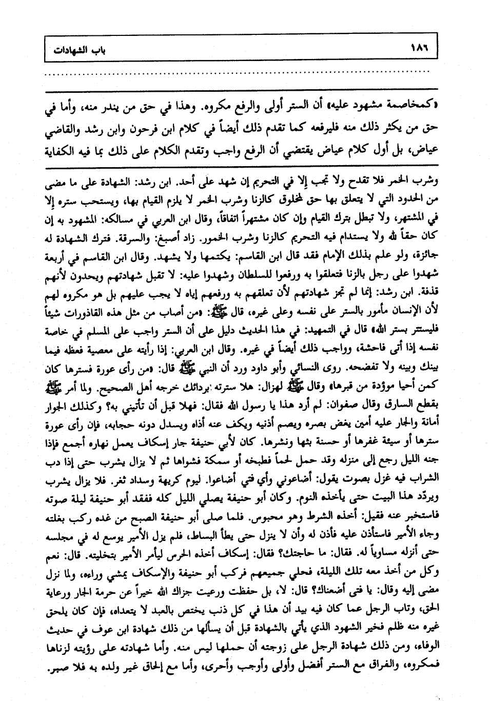 كمخاصمة مشهود عليه أن الستر أولى والرفع مكروه وهذا في حق من يندر منه وأما في حق من يكثر ذلك منه فليرفعه كما تقدم ذلك أيضا في كلام ابن فرحون وابن رشد والقاضي عياض بل أول كلام عياض يقتضي أن الرفع واجب وتقدم الكلام على ذلك بما فيه الكفاية