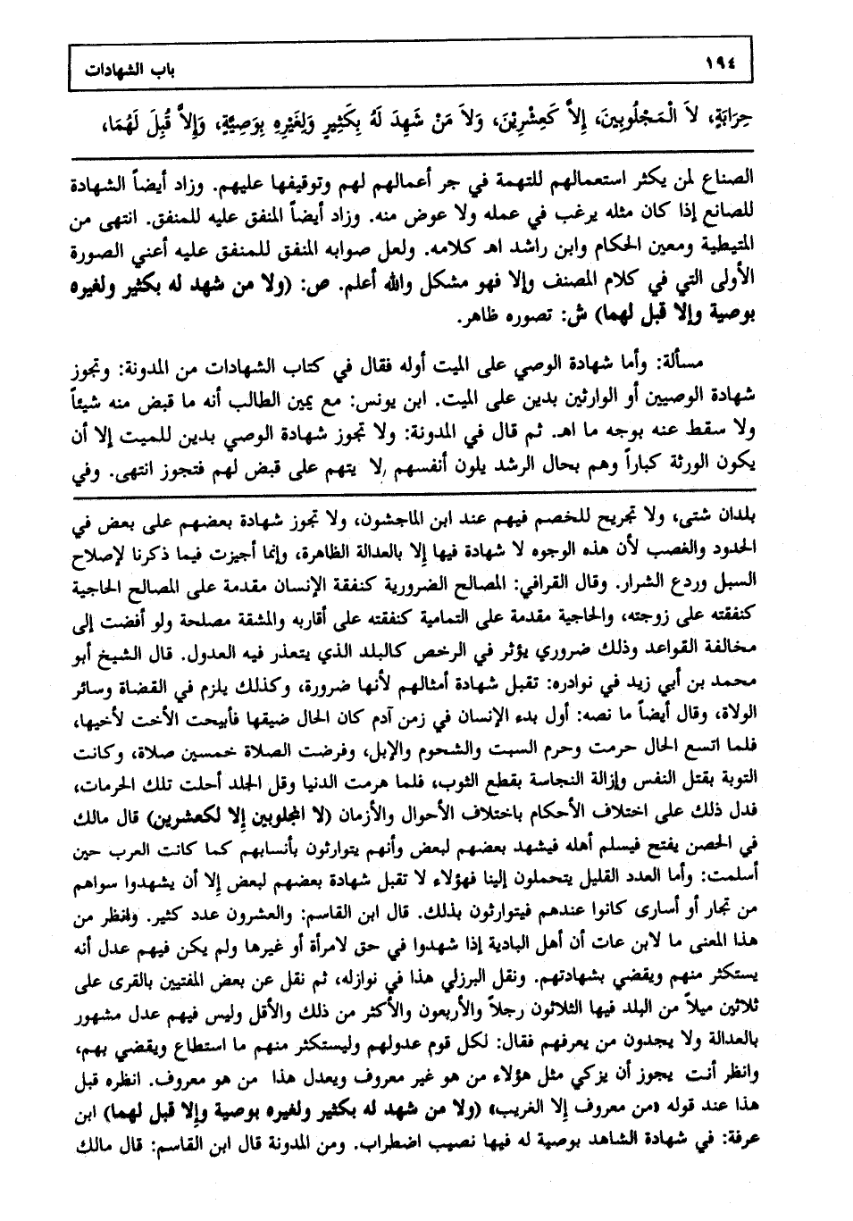 الصناع لمن يكثر استعمالهم للتهمة في جر أعمالهم لهم وتوقيفها عليهم، وزاد أيضا الشهادة للصانع إذا كان مثله يرغب في عمله ولا عوض منه وزاد أيضا المنفق عليه للمنفق انتهى من المتيطية ومعين الحكام وابن راشد ا هـ كلامه. ولعل صوابه المنفق للمنفق عليه أعني الصورة الأولى التي في كلام المصنف وإلا فهو مشكل والله أعلم. ص: (ولا من شهد له بكثير ولغيره بوصية وإلا قبل لهما) ش: تصوره ظاهر.