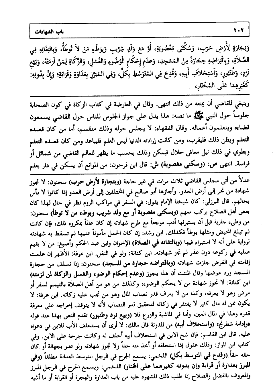 وتجارة لأرض حرب وسكني مغصوبة، أو مع ولد شريب، وبوطء من لا توطأ، وبالتفاتة في الصلاة، وبافتراضه حجارة من المسجد، وعدم إحكام الوضوء، والغسل والزكاة، لمن لزمته وبيع نرد وطنبور، واستخلاف أبيه وقدح في المتوسط بكل، وفي المبرز بعداوة وقرابة، وإن بدونه كغيرهما على المختار،