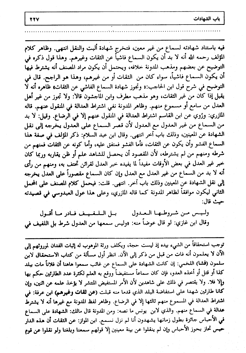 وقال ابن غازي: لو قال عوضا منه: وليس سمعها من العدول شرط بل اللفيف في