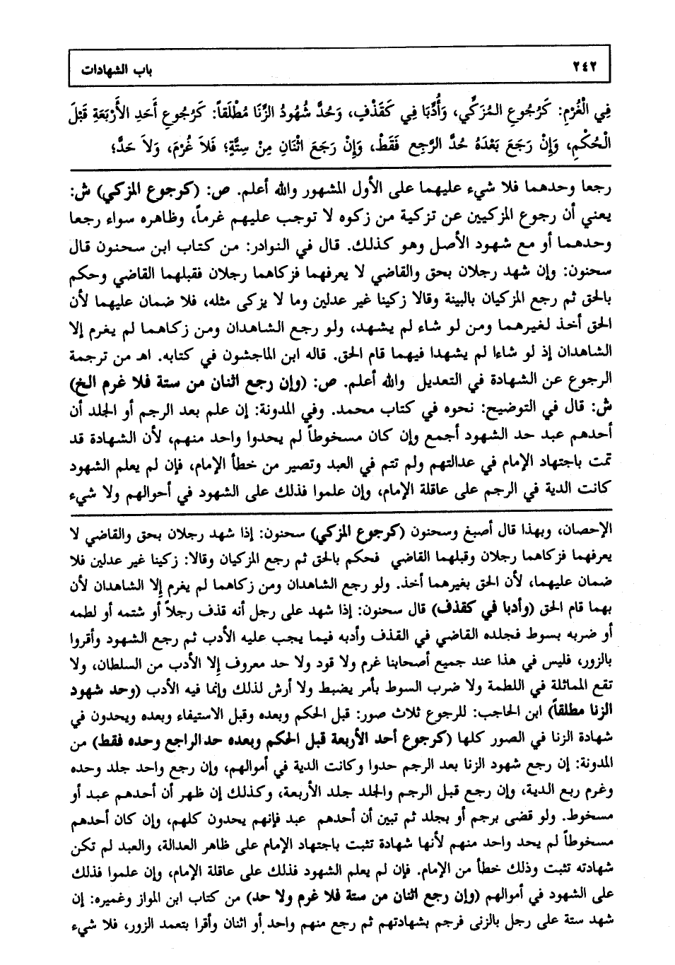 في الغرم كرجوع المزكي، وأدبا في كقذف وحد شهود الزنا مطلقاً كرجوع أحد الأربعة قبل الحكم، وإن رجع بعده حد الراجع فقط، وإن رجع اثنان من ستة فلا غرم ولا حد