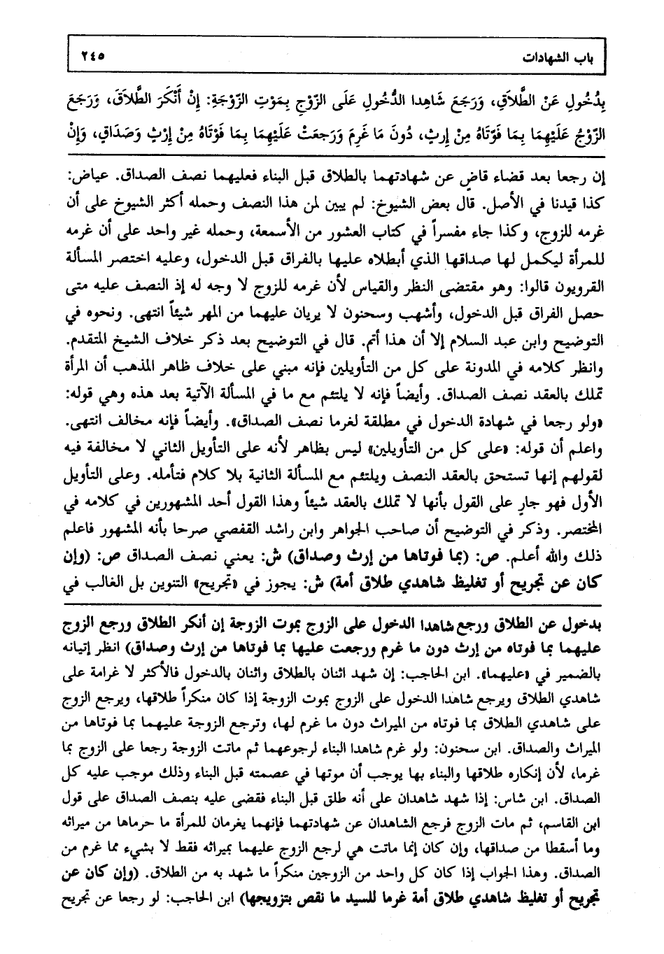 بدخول عن الطلاق ورجع شاهدا الدخول على الزوج بميراث الزوجة إن أنكر الطلاق، ورجع الزوج عليهما بما فوتاه من إرث دون ما غرما، ورجعت عليهما بما فوتاه من إرث وصداق وإن