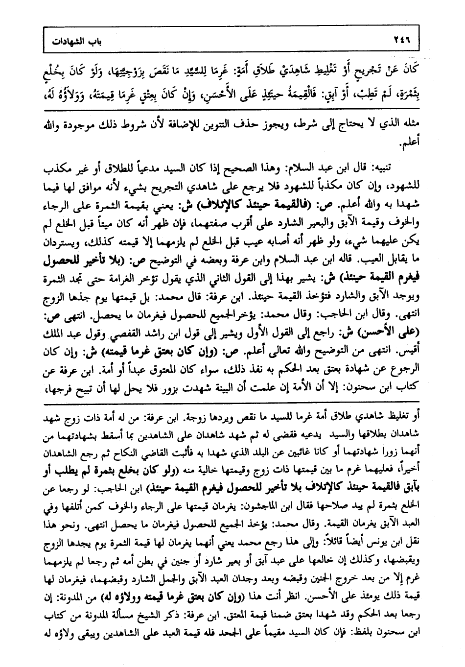 كان عن تخريج أو تغليط شاهدي طلاق أمة غرما للسيد ما نقص بزوجيتها ولو كان بخلع بثمرة لم تطب أو آبق فالقيمة حينئذ على الأحسن وإن كان بعتق غرما قيمته وولاؤه له،