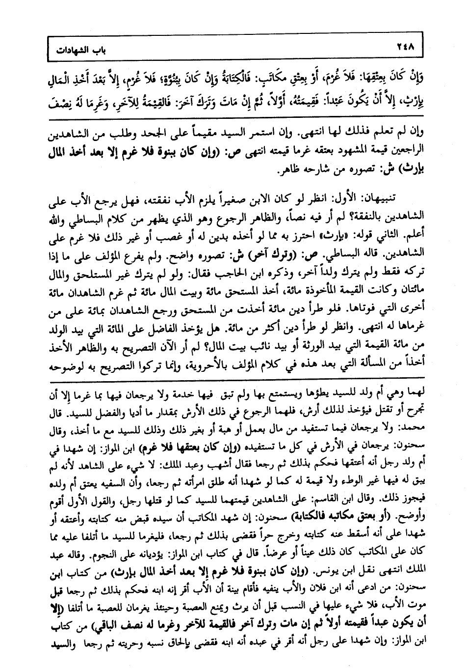 وإن لم تعلم فذلك لها انتهى. وإن استمر السيد مقيما على الجحد وطلب من الشاهدين الراجعين قيمة المشهود بعتقه غرما قيمته انتهى. ص: (وإن كان ببنوة فلا غرم إلا بعد أخذ المال بإرث) ش: تصوره من شارحه ظاهر.