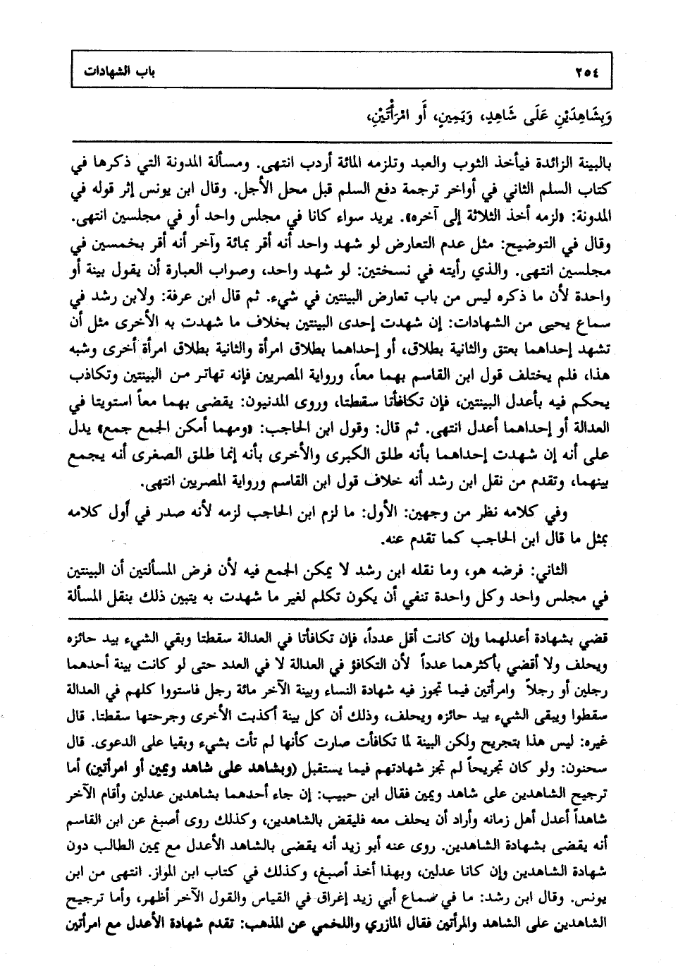 الثاني: فرضه هو وما نقله ابن رشد لا يمكن الجمع فيه لأن فرض المسألتين أن البينتين في مجلس واحد، وكل واحدة تنفي أن يكون تكلم لغير ما شهدت به، يتبين ذلك بنقل المسألة