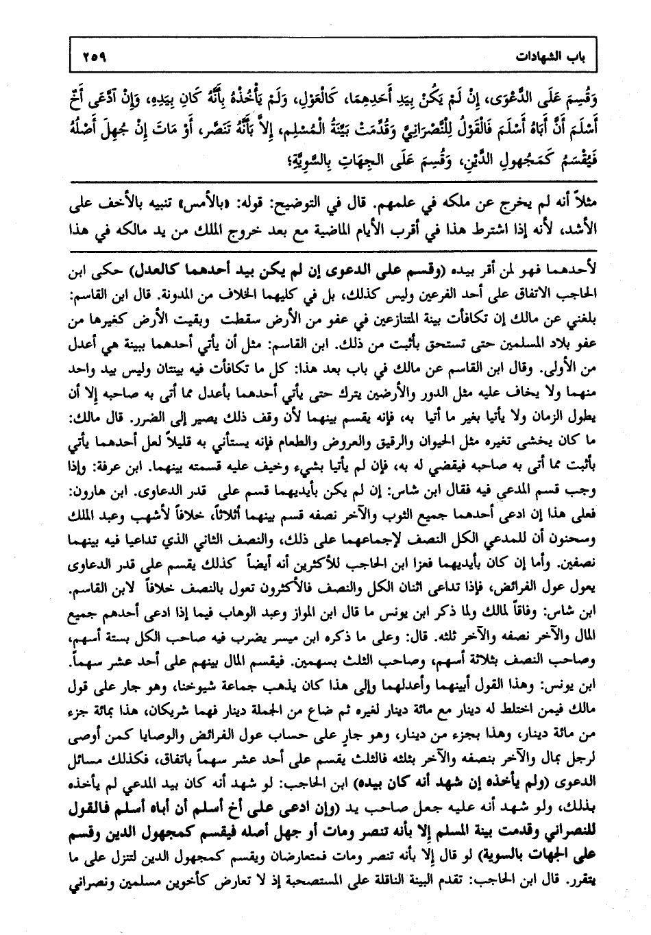 وقسم على الدعوى إن لم يكن بيد أحدهما كالعول ولم يأخذه بأنه كان بيده وإذا ادعى أخ أسلم أن أباه أسلم فالقول للنصراني، وقدمت بيّنة المسلم إلا بأنه تنصر، أو مات إن جهل أصله، فيقسم كمجهول الدين، وقسم على الجهات بالسوية
