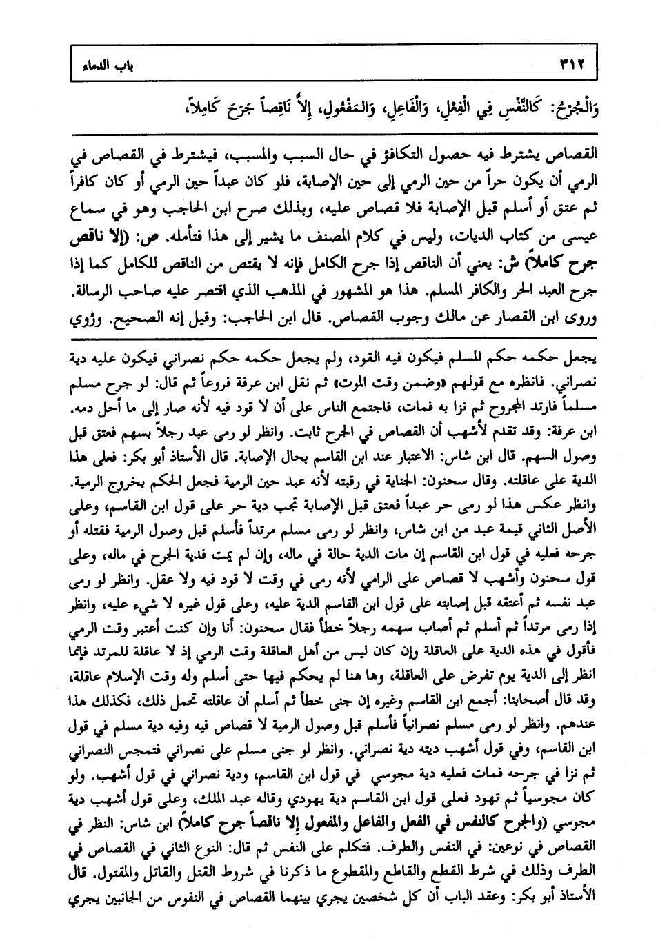 والجرح كالنفس في الفعل والفاعل والمفعول، إلا ناقصاً جرحاً كاملاً