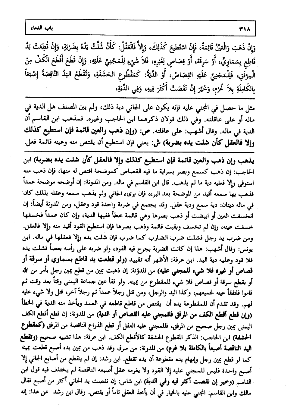 مثل ما حصل في المجني عليه فإنه يكون على الجاني دية ذلك ولم يبن المصنف هل الدية في ماله أو على عاقلته وفي ذلك قولان ذكرهما ابن الحاجب وغيره فمذهب ابن القاسم أن الدية في ماله وقال أشهب: على عاقلته. ص: (وإن ذهب والعين قائمة فإن استطيع كذلك وإلا فالعقل كأن شلت يده بضربة) ش: يعني فإن استطيع أن يقتص منه وعينه قائمة فعل.