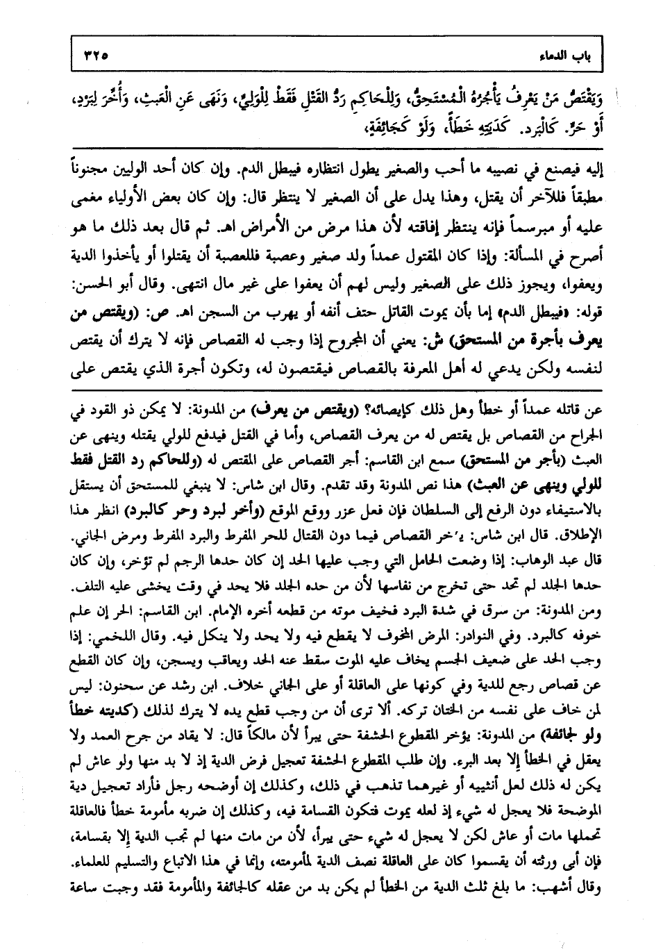 ويقتص من يعرف يأجره المستحق وللحاكم رد القتل فقط للولي، ونهى عن العبث وأخر لبرد أوحر، كالبرد وكديته خطأ ولوكجائفة