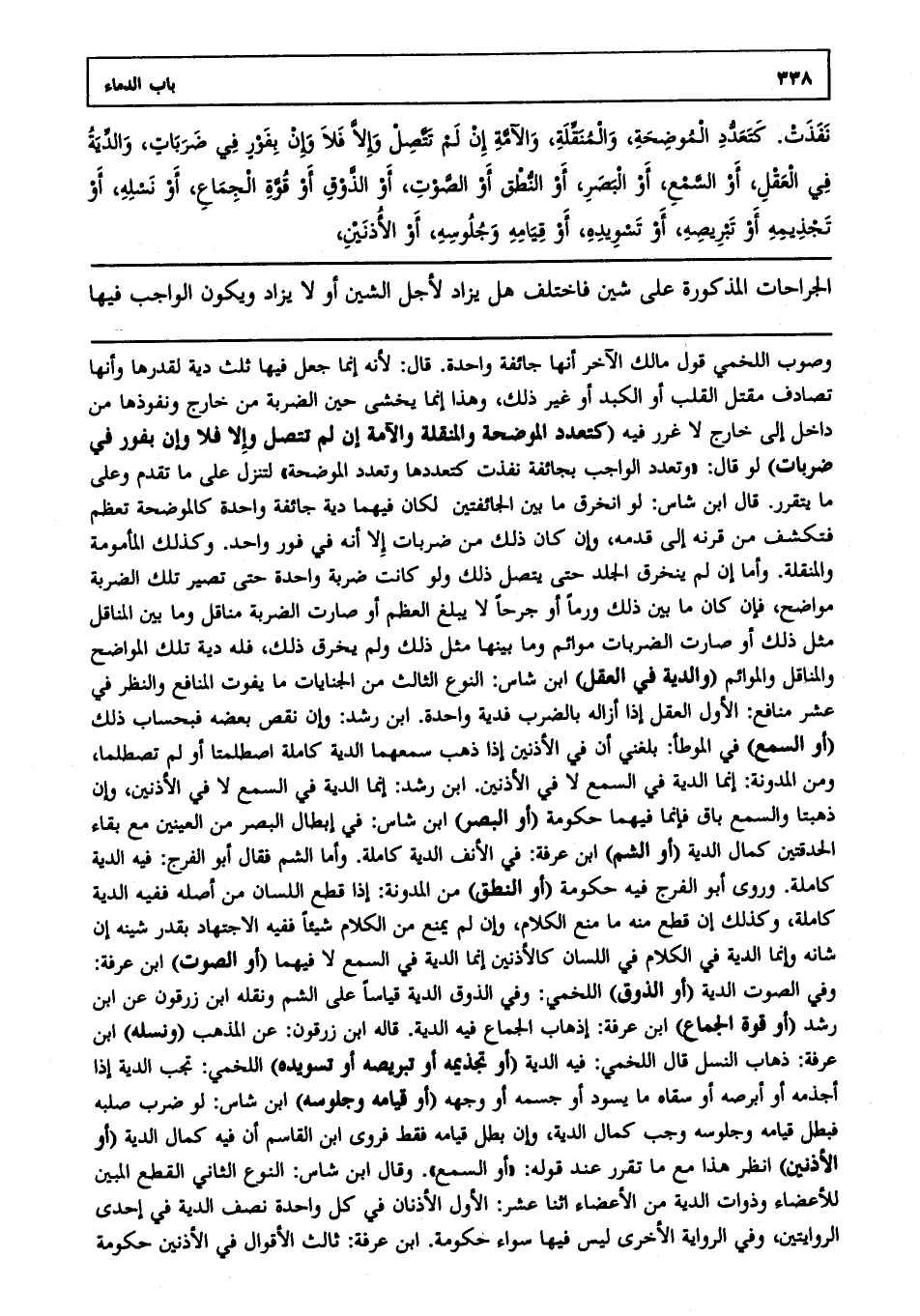 الجراحات المذكورة على شين فاختلف هل يزاد لأجل الشين أو لا يزاد ويكون الواجب فيها