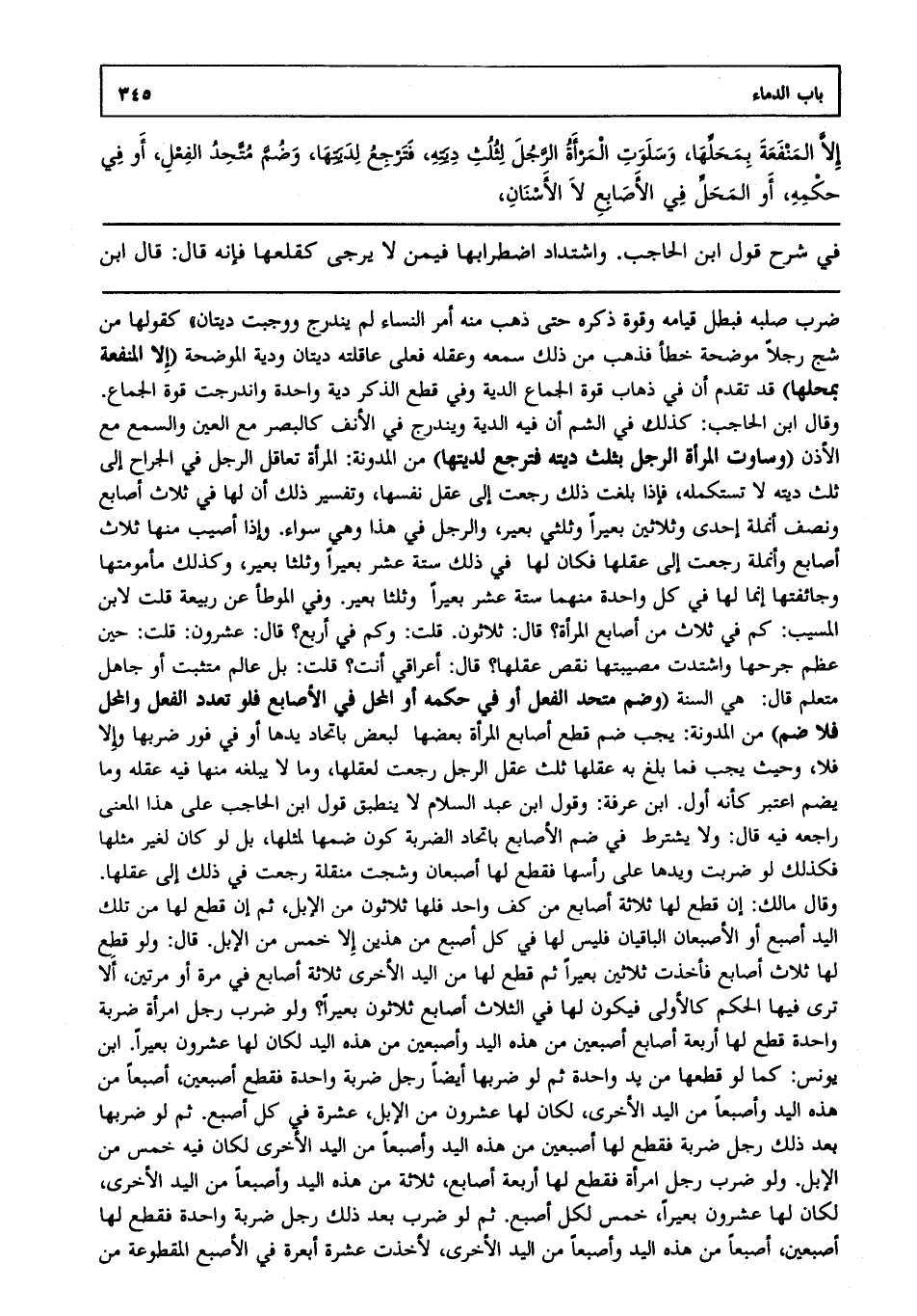 إلا المنفعة بمحلها وسلوت المرأة الرجل لثلث ديته فترجع لديتها وضم متحد الفعل أو في حكمه أو المحل في الأصابع لا الأسنان