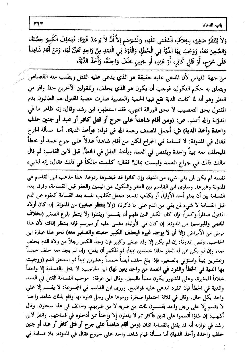 من جهة القياس لأن المدعى عليه حقيقة هو الذي يدعى عليه القتل ويطلب منه القصاص ويتعلق به حكم النكول فوجب أن يكون هو الذي يحلف وللقولين الآخرين حظ وافر من النظر وهو أنه لما كانت الدية تقع فيها الحمية والعصبية صارت عصبة المقتول هم الطالبون بدم المقتول بحق التعصيب لا بحق الوراثة انتهى. فقد استظهره ابن رشد وقال: إنه ظاهر ما في المدونة والله أعلم.