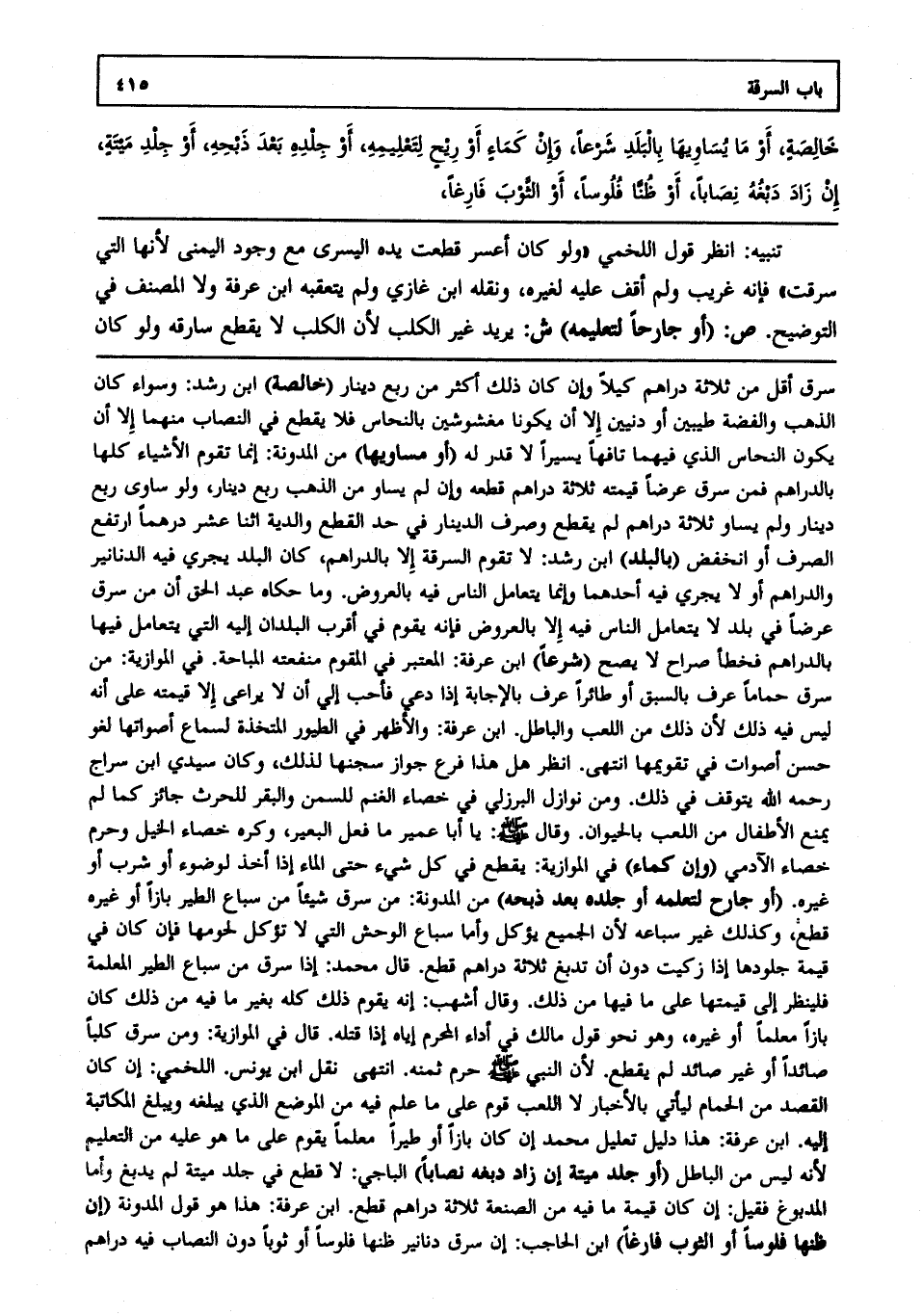تنبيه: انظر قول اللخمي: ولو كان أعسر قطعت يده اليسرى مع وجود اليمنى لأنها التي سرقت فإنه غريب ولم أقف عليه لغيره ونقله ابن غازي ولم يتعقبه ابن عرفة ولا المصنف في التوضيح