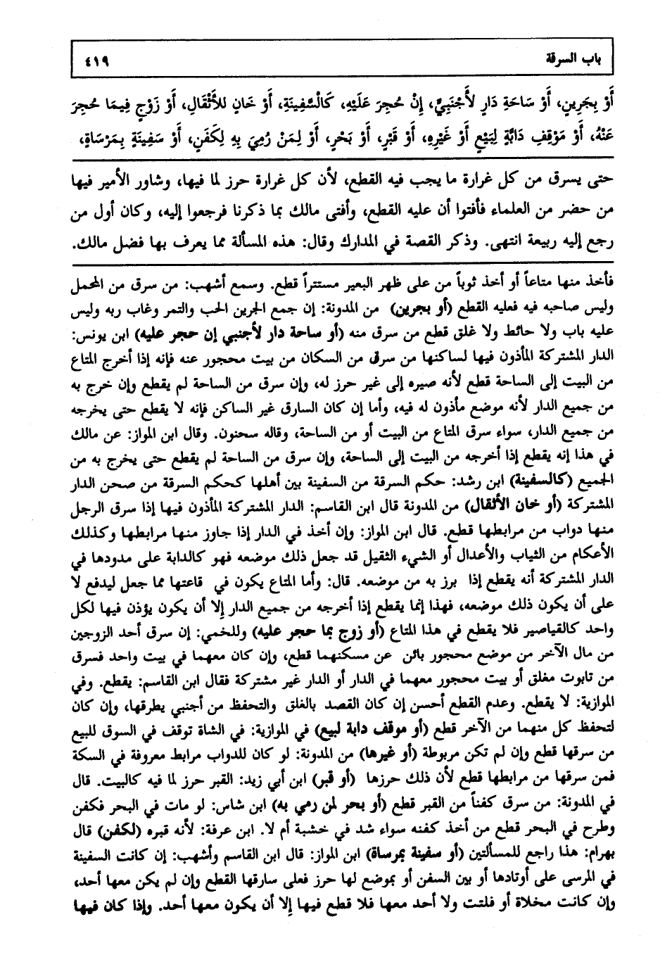 حتى يسرق من كل غرارة ما يجب فيه القطع؛ لأن كل غرارة حرز لما فيها، وشاور الأمير فيها من حضر من العلماء فأفتوا أن عليه القطع. وأفتى مالك بما ذكرنا فرجعوا إليه وكان أول من رجع إليه ربيعة انتهى. وذكر القصة في المدارك وقال هذه المسألة مما يعرف بها فضل مالك