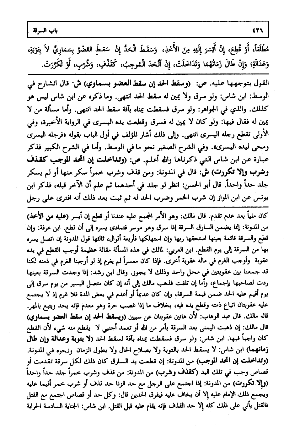 القول بتوجهها عليه. ص: (وسقط الحد إن سقط العضو بسماوي) ش: قال الشارح في الوسط ابن شاس: ولو سرق ولا يمين له سقط الحد انتهى. وما ذكره عن ابن شاس ليس هو كذلك والذي في الجواهر ولو سرق فسقطت يمناه بآفة سقط الحد انتهى. وأما مسألة من لا يمين له فقال فيها: ولو كان لا يمين له فسرق وقطعت يده اليسرى في الرواية الأخيرة وفي الأولى تقطع رجله اليسرى انتهى. وإلى ذلك أشار المؤلف في أول الباب بقوله: "فرجله اليسرى" ومحى ليده اليسرى وفي الشرح الصغير نحو ما في الوسط وأما في الشرح الكبير فذكر عبارة عن ابن شاس التي ذكرناها والله أعلم.
