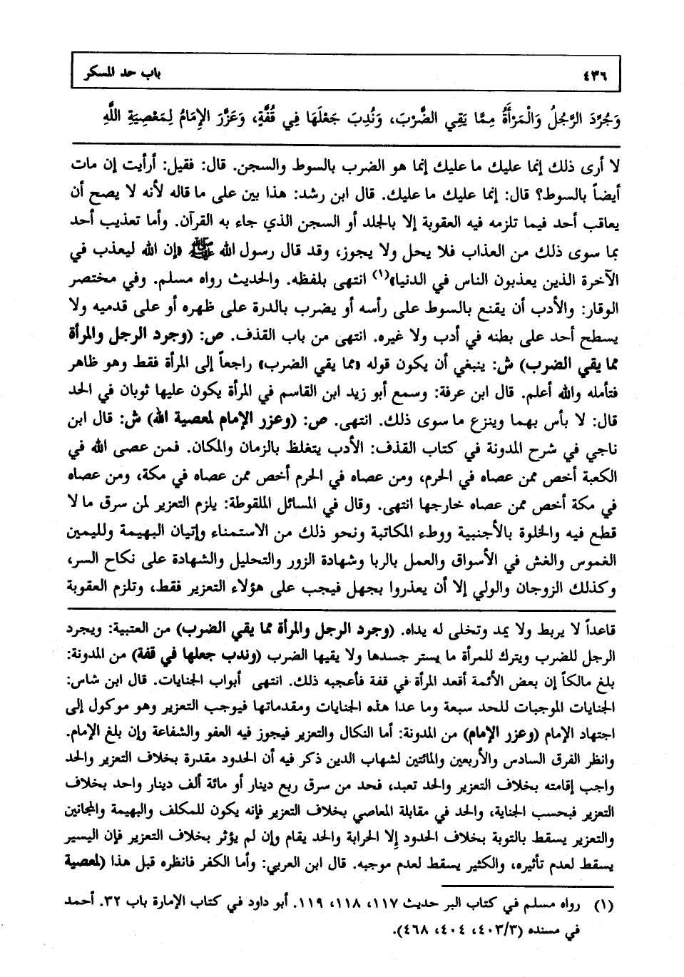 وجرد الرجل مما يقي الضرب، وندب جعلها في فقة، وعزر الإمام لمعصية الله