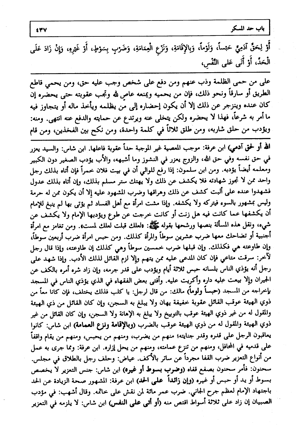 أو لحق آدمي حبساً ولوماً وبالإقامة، ونزع العمامة، وضرب بسوط أو غيره، وإن زاد على الحد، أو أتى على النفس