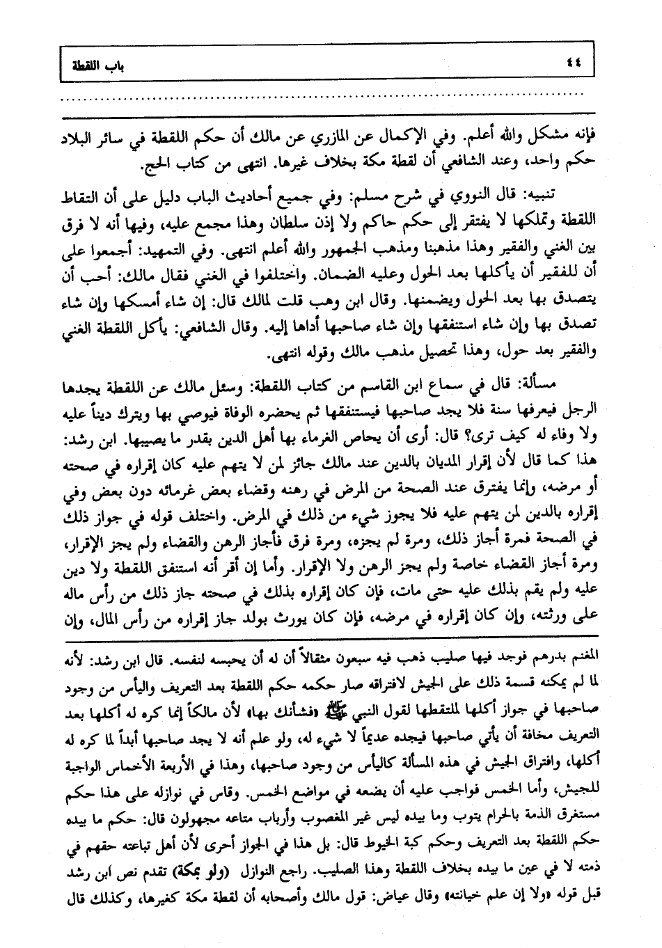 فَإِنَّهُ مُشْكِلٌ، وَاَللَّهُ أَعْلَمُ. وَفِي الْإِكْمَالِ عَنْ الْمَازِرِيِّ عَنْ مَالِكٍ أَنَّ حُكْمَ اللُّقَطَةِ فِي سَائِرِ الْبِلَادِ حُكْمٌ وَاحِدٌ وَعِنْدَ الشَّافِعِيِّ أَنَّ لُقَطَةَ مَكَّةَ بِخِلَافِ غَيْرِهَا، انْتَهَى. مِنْ كِتَابِ الْحَجِّ