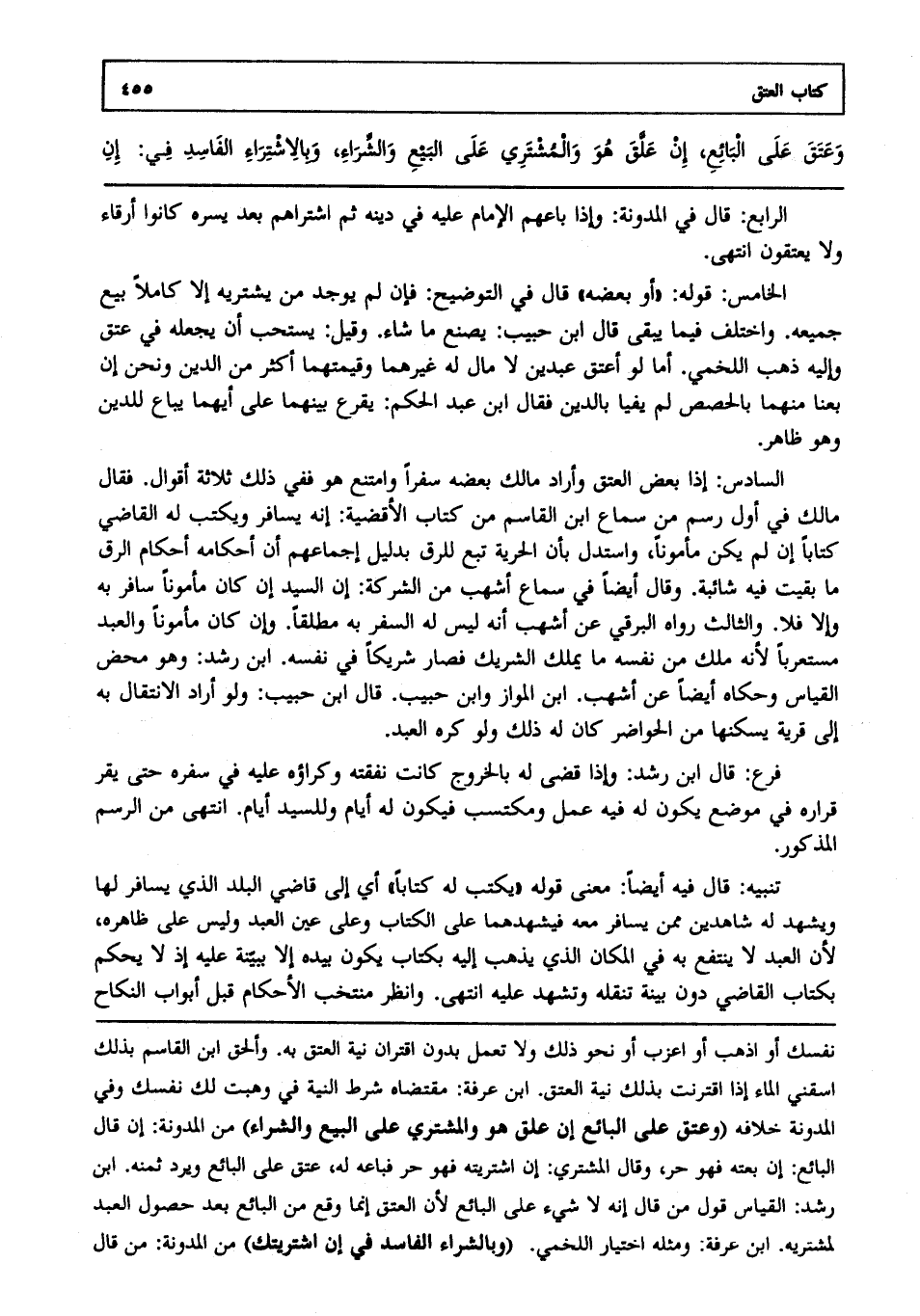 تنبيه: قال فيه أيضا معنى قوله: "يكتب له كتابا" أي إلى قاضي البلد الذي يسافر لها ويشهد له شاهدين ممن يسافر معه فيشهدهما على الكتاب وعلى عين العبد وليس على ظاهره؛ لأن العبد لا ينتفع به في المكان الذي يذهب إليه بكتاب يكون بيده إلا ببينة عليه إذ لا يحكم بكتاب القاضي دون بينة تنقله وتشهد عليه انتهى. وانظر منتخب الأحكام قبل أبواب النكاح،