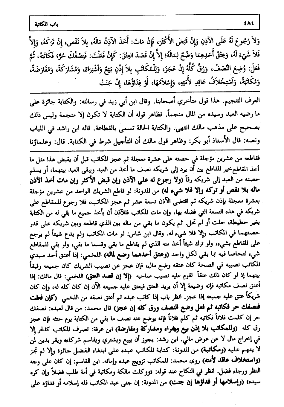 العرف التنجيم هذا قول متأخري أصحابنا، وقال ابن أبي زيد في رسالته: والكتابة جائزة على ما رضيه العبد وسيده من المال منجما فظاهر قوله أن الكتابة لا تكون إلا منجمة وليس ذلك بصحيح على مذهب مالك انتهى. والكتابة الحالة تسمى بالقطاعة، قاله ابن راشد في اللباب، ونصه: قال الأستاذ أبو بكر وظاهر قول مالك أن التأجيل شرط في الكتابة قال: وعلماؤنا