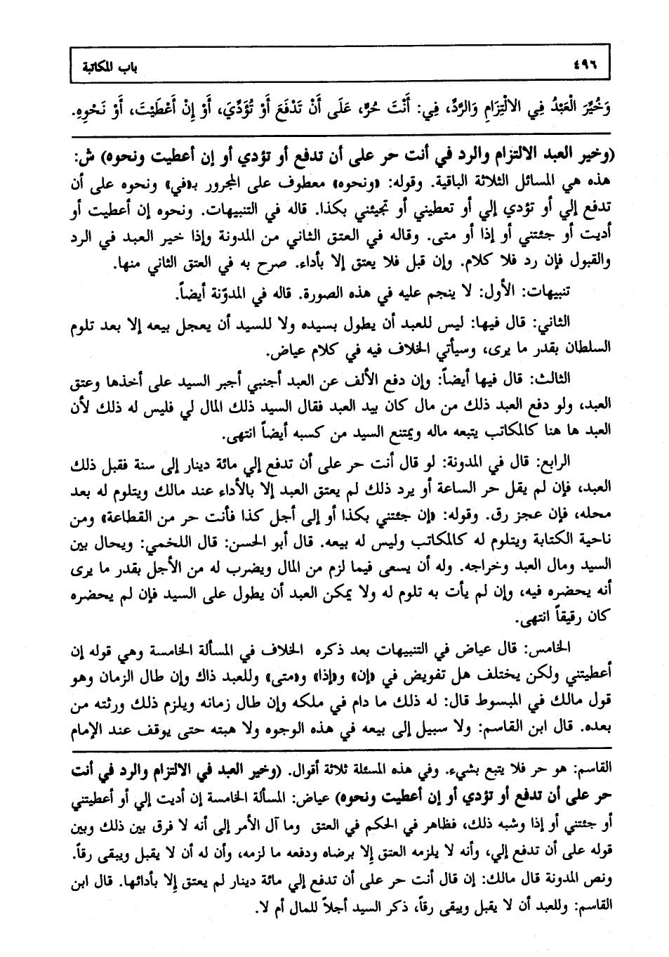 وخير العبد في الالتزام، والرد في حر على أن تدفع، أو تؤدي، أو إن أعطيت ونحوه