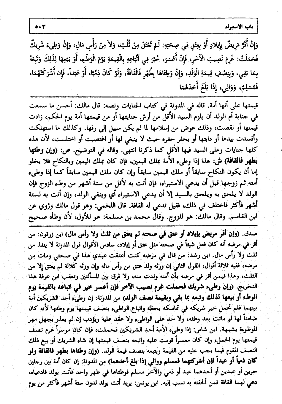 وإن أقر مريض بإيلاد أو بعتق في صحته لم تعتق من ثلث ولا من رأس مال، وإن وطئ شريك فحملت غرم نصيب الآخر فإن أعسر خير في اتباعه بالقيمة يوم الوطء، أو بيعها لذلك، وتبعه بما بقي ونصف قيمة الولد وإن وطئآها بطهر فالقافة، ولو كان ذمياً أوعبداً فإن أشركتهما فمسلم، ووالي إذا بلغ أحدهما،
