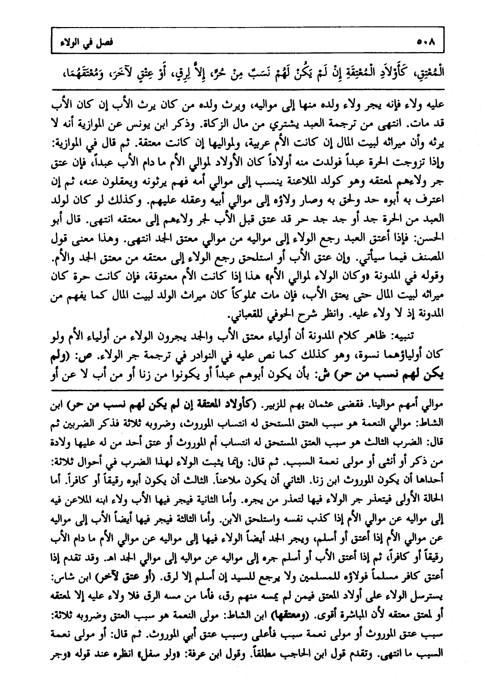المعتق كأولاد المعتقة إن لم يكن لهم نسب من حر، إلا لرق أوعتق لآخر ومعتقهما