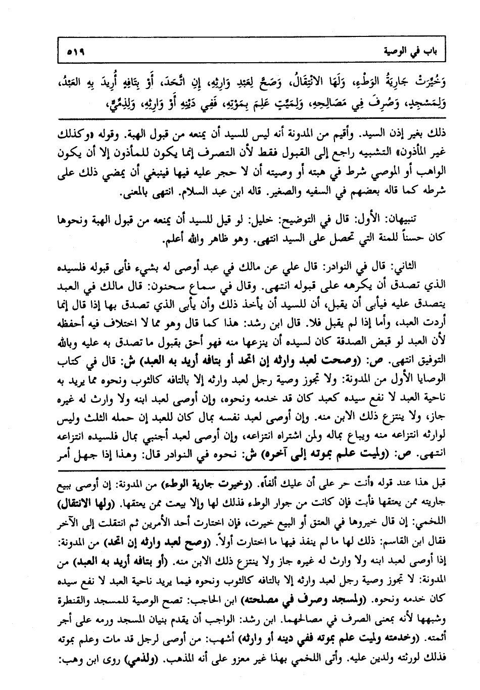 تنبيهان: الأول: قال في التوضيح: خليل: لو قيل للسيد أن يمنعه من قبول الهبة ونحوها كان حسنا للمنة التي تحصل على السيد انتهى. وهو ظاهر، والله أعلم.