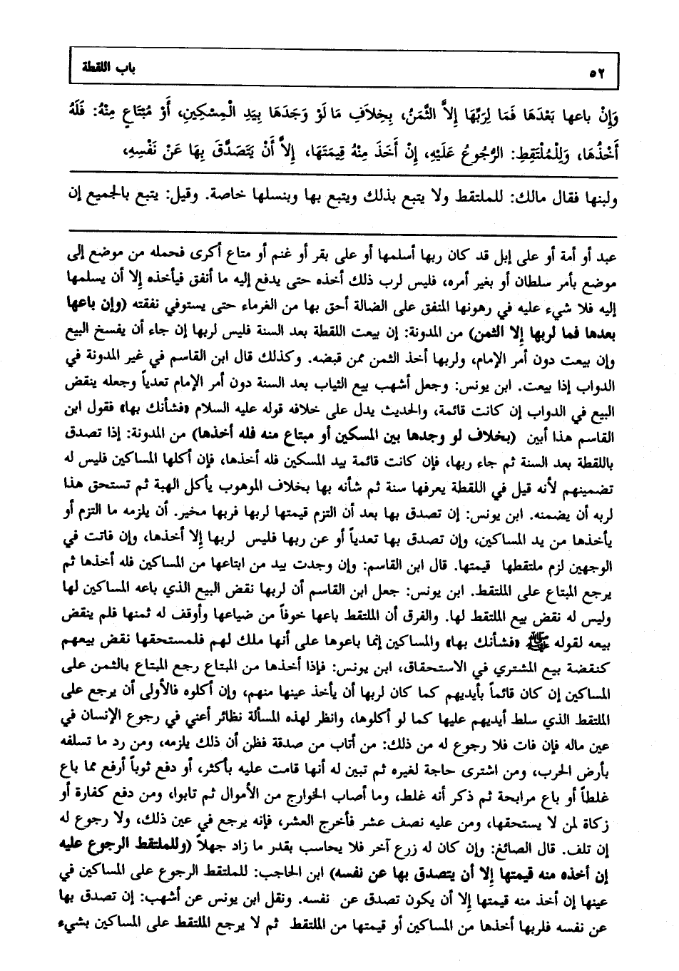 وَلَبَنُهَا، فَقَالَ مَالِكٌ: لِلْمُلْتَقِطِ وَلَا يُتْبَعُ بِذَلِكَ وَيُتْبَعُ بِهَا وَبِنَسْلِهَا خَاصَّةً وَقِيلَ يُتْبَعُ بِالْجَمِيعِ إنْ
