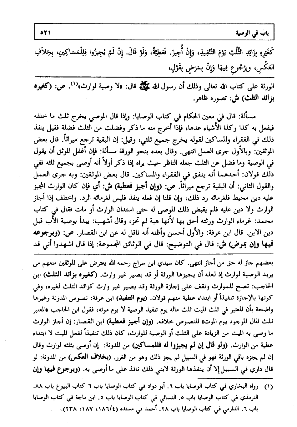 1 رواه البخاري في كتاب الوصايا باب 6. أبو داود في كتاب الوصايا باب 6. كتاب البيوع باب 88. الترمذي في كتاب الوصايا باب 5. ابن ماجة في كتاب الوصايا باب 6. الدارمي في كتاب الوصايا باب 28. أحمد في مسنده (4/186، 187، 238).