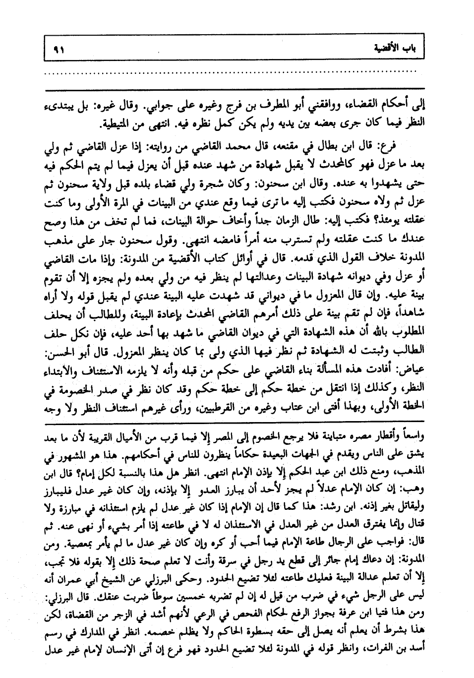 إلى أحكام القضاء ووافقني أبو المطرف بن فرج وغيره على جوابي وقال غيره: بل يبتدئ النظر فيما كان جرى بعضه بين يديه ولم يكن كمل نظره فيه، انتهى. من المتيطية.