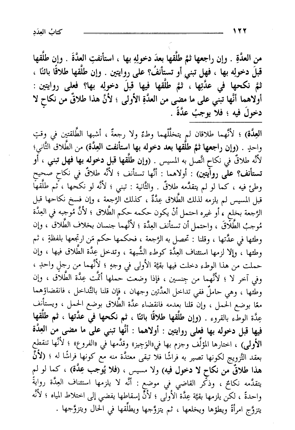 من العدة وإن راجعها ثم طلقها بعد دخوله بها استأنفت العدة وإن طلقها قبل دخوله بها فهل تبني أو تستأنف على روايتين وإن طلقها طلاقا بائنا ثم نكحها في عدتها ثم طلقها فيها قبل دخوله بها فعلى روايتين أولاهما أنها تبني على ما مضى من العدة الأولى لأن هذا طلاق من نكاح لا دخول فيه فلا يوجب عدة.