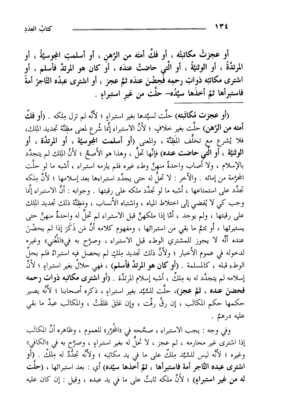 أو عجزت مكاتبته أو فك أمته من الرهن أو أسلمت المجوسية أو المرتدة أو الوثنية أو التي حاضت عنده أو كان هو المرتد فأسلم أو اشترى مكاتبه ذوات رحمه فحضن عنده ثم عجز أو اشترى عبده التاجر أمة فاستبرأها ثم أخذها سيده حلت من غير استبراء