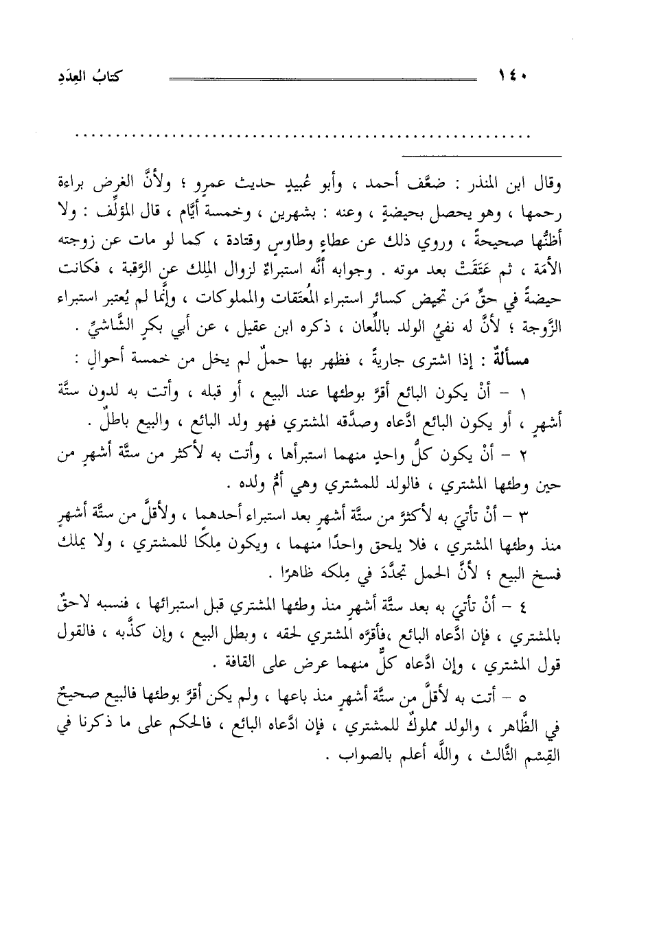 5- أتت به لأقل من ستة أشهر منذ باعها ولم يكن أقر بوطئها فالبيع صحيح في الظاهر والولد مملوك للمشتري فإن ادعاه البائع فالحكم على ما ذكرنا في القسم الثالث والله أعلم بالصواب.