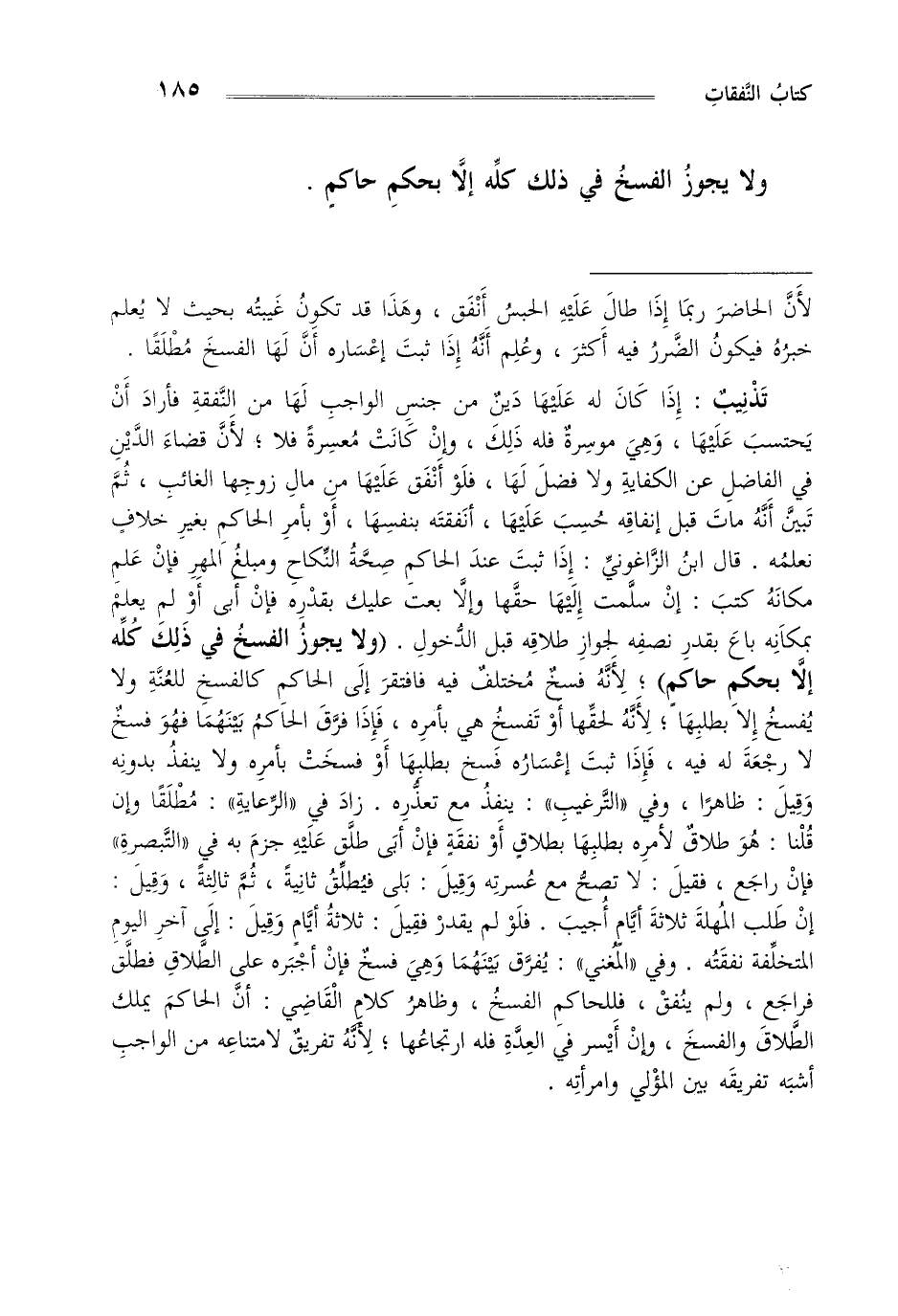 ولا يجوز الفسخ في ذلك كله إلا بحكم حاكم