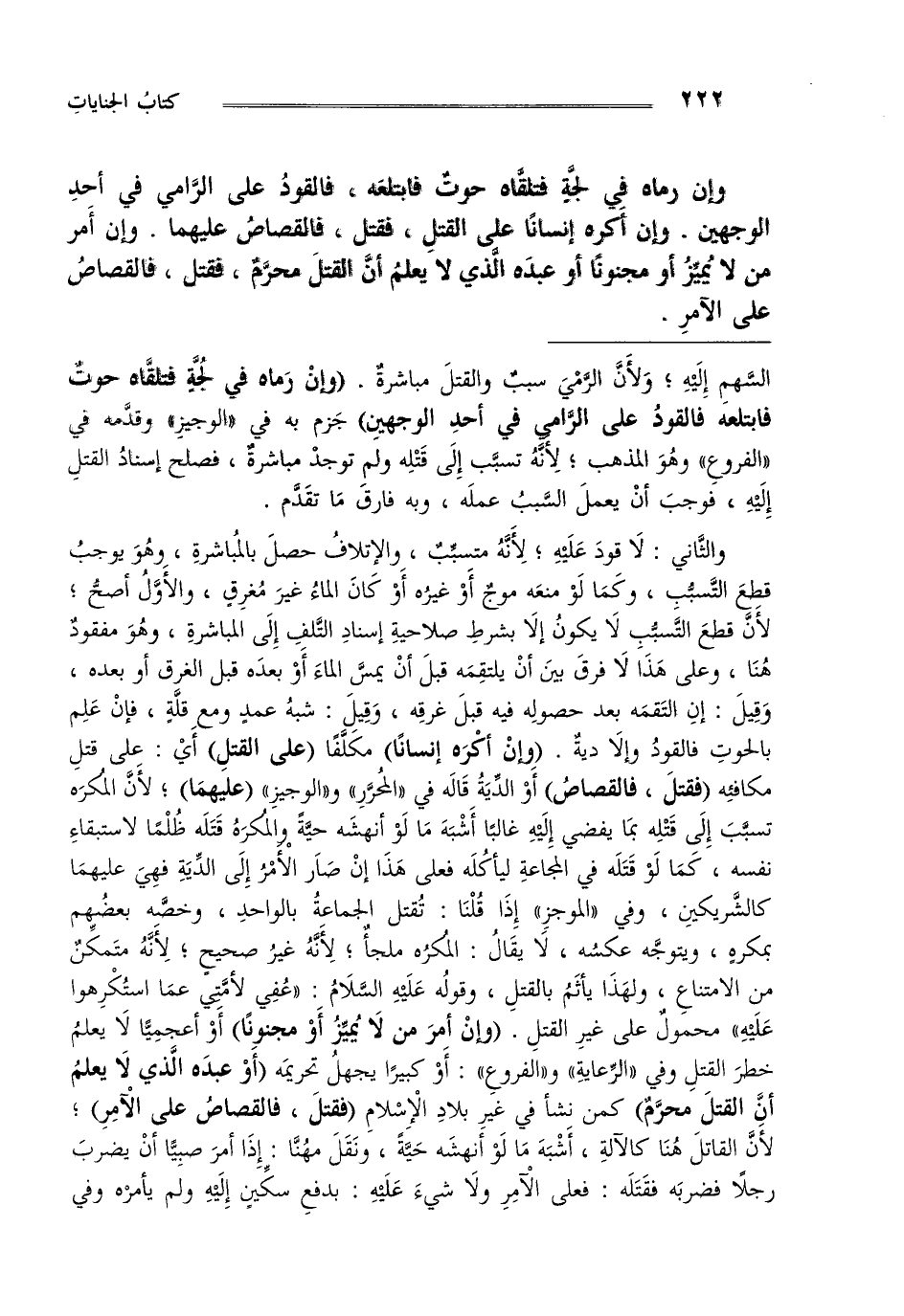والثاني لا قود عليه لأنه متسبب والإتلاف حصل بالمباشرة وهو يوجب قطع التسبب وكما لو منعه موج أو غيره أو كان الماء غير معروف والأول أصح لأن قطع التسبب لا يكون إلا بشرط صلاحية إسناد التلف إلى المباشرة وهو مفقود هنا وعلى هذا لا فرق بين أن يلتقمه قبل أن يمس الماء أو بعده قبل الغرق أو بعده وقيل إن التقمه بعد حصوله فيه قبل غرقه وقيل شبه عمد ومع قلة فإن علم بالحوت فالقود وإلا دية "وإن أكره إنسانا" مكلفا "على القتل" أي على قتل مكافئه "فقتل فالقصاص" أو الدية قاله في "المحرر" و"الوجيز" "عليهما" لأن المكره تسبب إلى قتله بما يفضي إليه غالبا أشبه ما لو أنهشه حية والمكره قتله ظلما لاستبقاء نفسه كما لو قتله في المجاعة ليأكله فعلى هذا إن صار الأمر إلى الدية فهي عليهما كالشريكين وفي "الموجز" إذا قلنا تقتل الجماعة بالواحد وخصه بعضهم بمكره ويتوجه عكسه لا يقال المكره ملجأ لأنه غير صحيح لأنه متمكن من الامتناع ولهذا يأثم بالقتل وقوله عليه السلام "عفي لأمتي عما استكرهوا عليه" محمول على غير القتل "وإن أمر من لا يميز أو مجنونا" أو أعجميا لا يعلم خطر القتل وفي "الرعاية" و"الفروع" أو كبيرا يجهل تحريمه "أو عبده الذي لا يعلم أن القتل محرم" كمن نشأ في غير بلاد الإسلام "فقتل فالقصاص على الآمر" لأن القاتل هنا كالآلة أشبه ما لو أنهشه حية ونقل مهنا إذا أمر صبيا أن يضرب رجلا فضربه فقتله فعلى الآمر ولا شيء عليه بدفع سكين إليه ولم يأمره وفي
