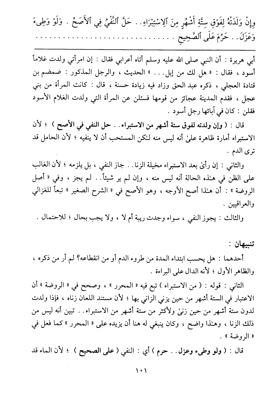 والثاني: إذ رأى بعد الاستبراء مخيلة الزنا .. جاز النفي، بل يلزمه؛ لأن الغالب على الظن في هذه الحالة أنه ليس منه، وإن لم ير شيئًا .. لم يحز، وفي (أصل الروضة): أن هذا أصح الأوجه، وهو الأصح في (الشرح الصغير) تبعًا للغزالي والعراقيين.