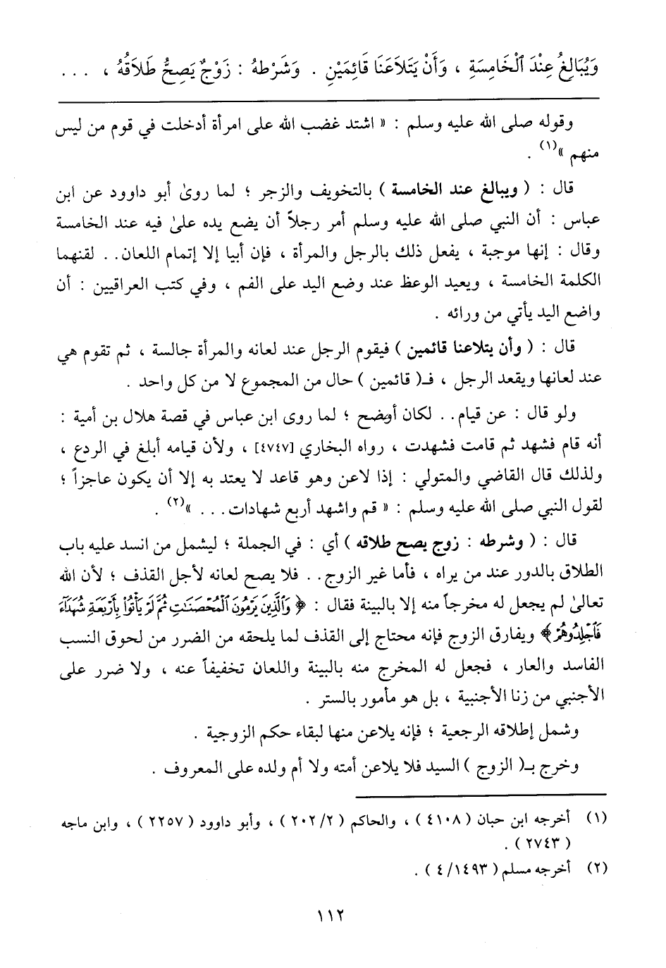 ولو قال: عن قيام .. لكان أوضح؛ لما روى ابن عباس في قصة هلال بن أمية: أنه قام فشهد ثم قامت فشهدت، رواه البخاري {4747}، ولأن قيامه أبلغ في الردع، ولذلكقال القاضي والمتولي: إذا لاعن وهو قاعد لا يعتد به إلا أن يكون عاجزًا؛ لقول النبي صلى الله عليه وسلم: (قم واشهد أربع شهادات ....).