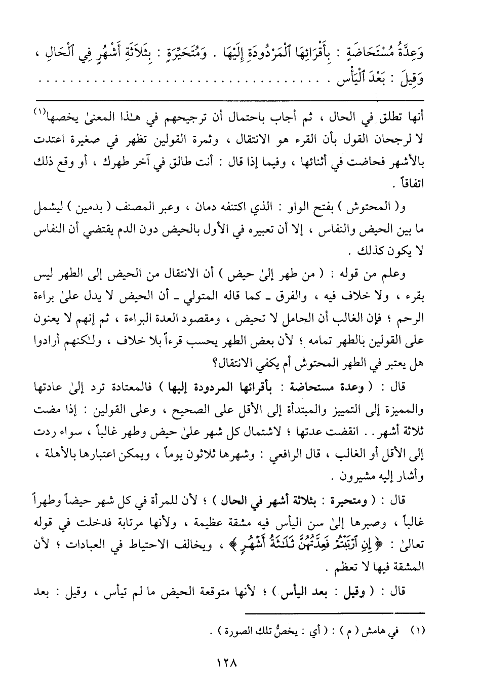 وعلم من قوله: (من طهر إلى حيض) أن الانتقال من الحيض إلى الطهر ليس بقرء, ولا خلاف فيه, والفرق – كما قال المتولي – أن الحيض لا يدل على براءة الرحم؛ فإن الغالب أن الحامل لا تحيض, ومقصود العدة البراءة, ثم إنهم لا يعنون على القولين بالطهر المحتوش أم يكفي الانتقال؟